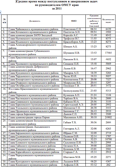 В этом году все муниципалитеты перешли от работы с бумажным носителем к системе электронного документооборота. Их работа с документами стала более прозрачной. В таблице дана информация по главам муниципалитетов, но никаких проблем посмотреть по каждому чиновнику. Мне кажется, это может быть очень удобно главам в их управленческой деятельности, это может быть интересно прессе, да и любому человеку.